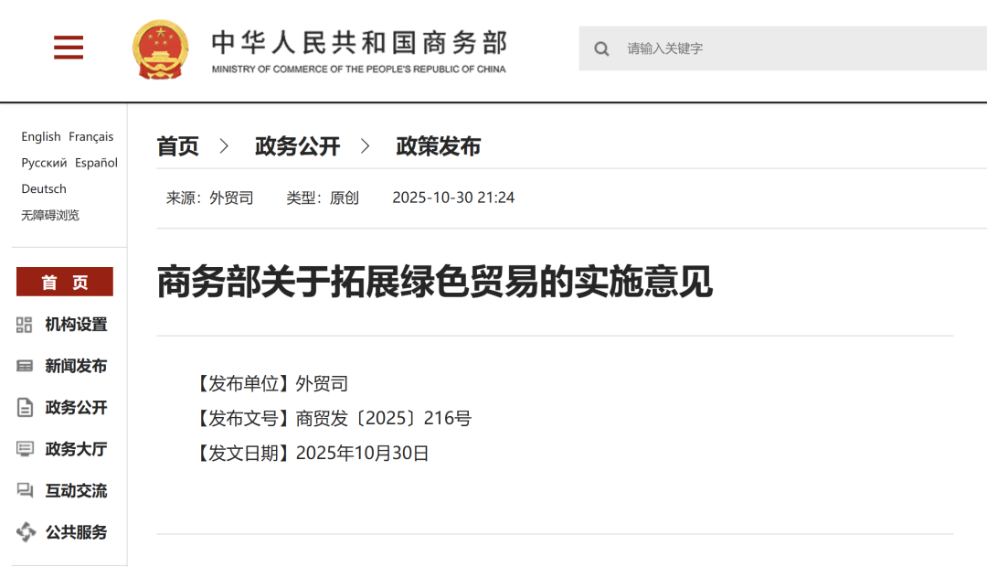 商务部发布《关于拓展绿色贸易的实施意见》,(以下简称《意见》)。意见提出,发展绿氢等可持续燃料贸易;推动使用可再生合成燃料等清洁能源的运输车辆、船舶投入外贸货物运输;支持有条件的地方开展国际航行船舶保税液化天然气、生物柴油、绿醇、绿氨等加注业务;加快建立航运绿色燃料认证体系,推动国际互认。